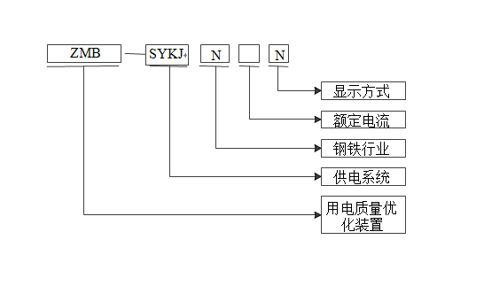 型號(hào):用電質(zhì)量?jī)?yōu)化裝置的型號(hào)表示方法如下(圖1)所示: